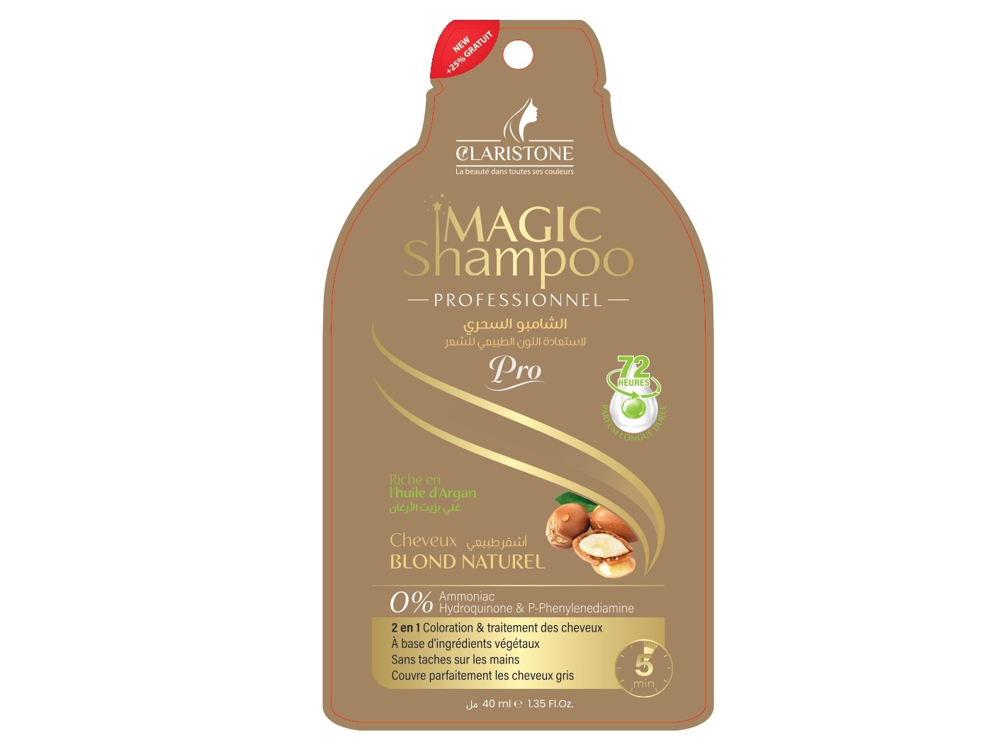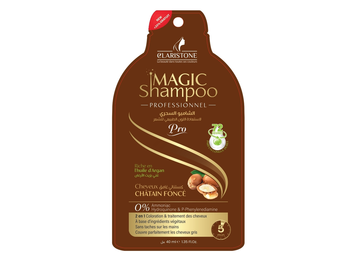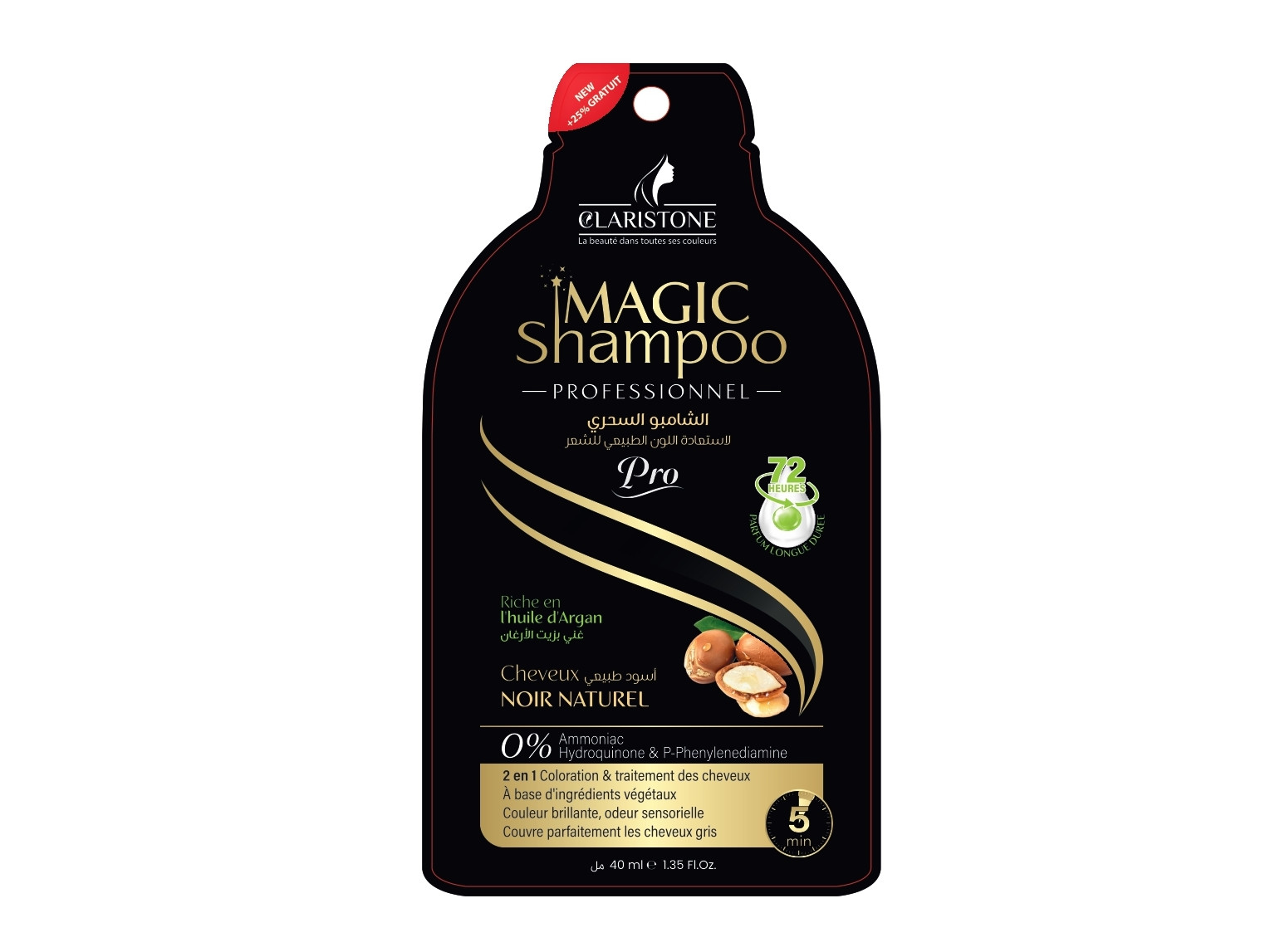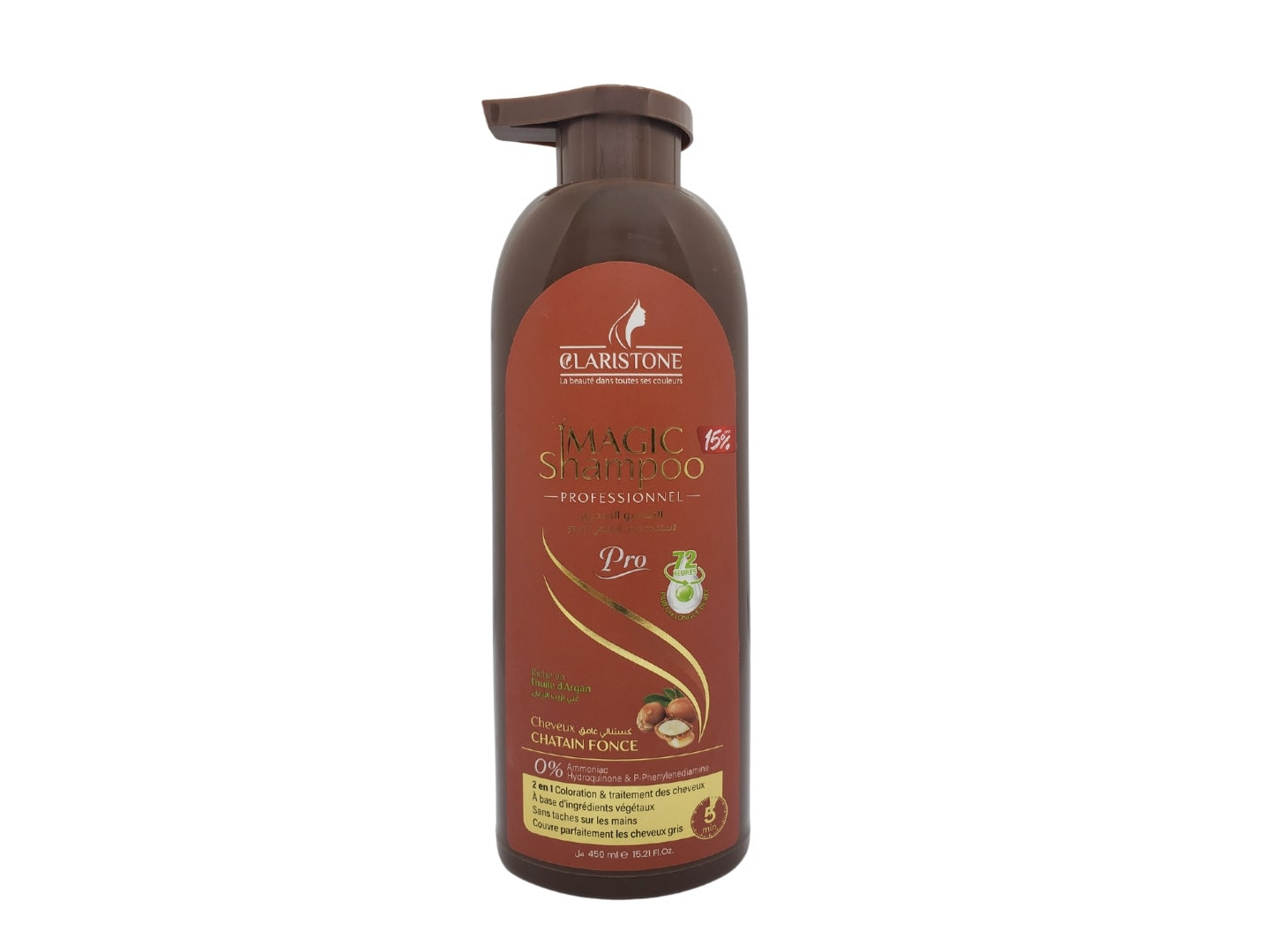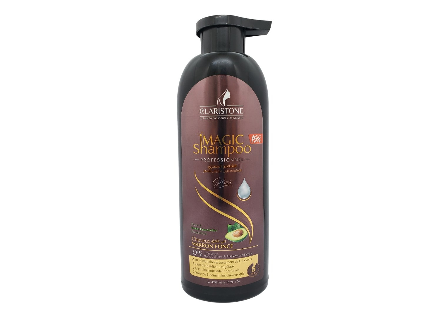 Le shampoing magic de claristone teint et soigne les cheveu en même temps sans laisser de trace sur les mains , Contiens des huiles essentielles qui protége complétement la chevelure des racines jusqu’aux points et permet aussi de les revitalisé et leur donnent douceur, brillance et une odeur sensorielle. Après la coloration, les cheveux deviennent soyeux, souple et naturels pour une longue durée.